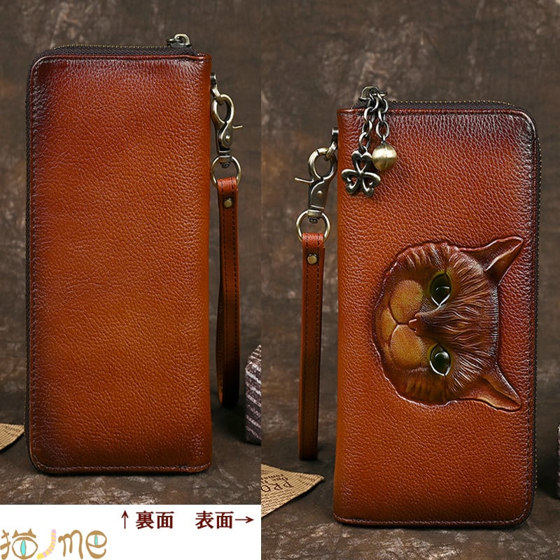 美し可愛い猫の男女兼用のシンプルな、でも格好いい本革レトロ長財布です。