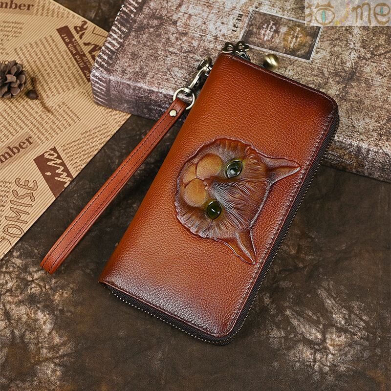 【商品名】:本革レトロな猫のロング財布