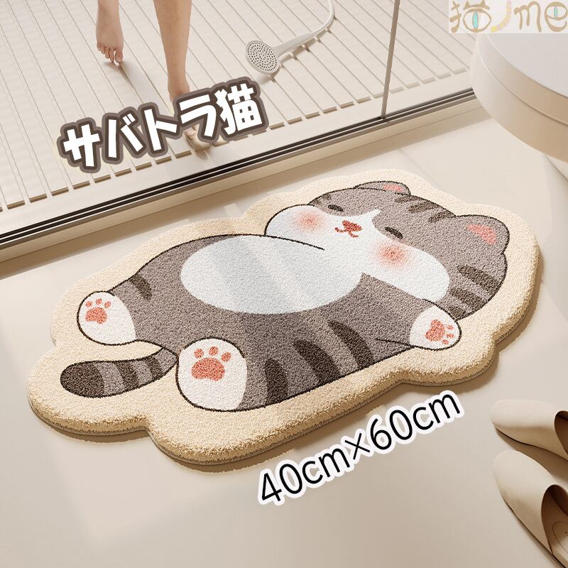 マット 猫グッズ 雑貨 猫グッズ お風呂マット 足拭きマット 玄関マット トイレマット 吸水 防水マット 滑り止め 40×60cm 滑り止めマット フロアマット
